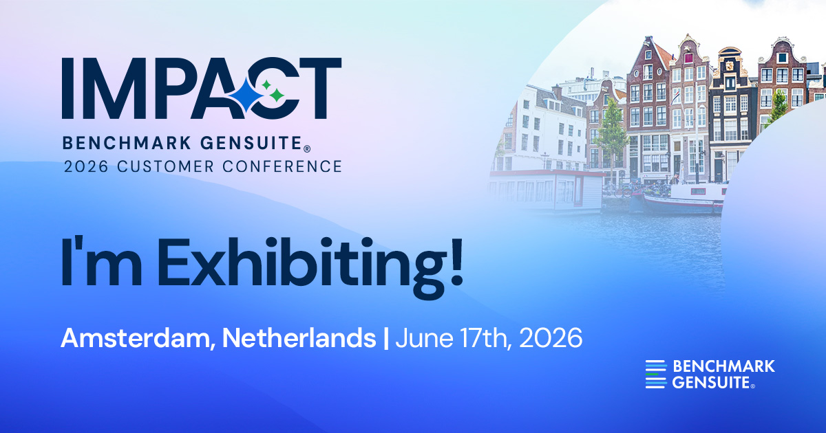 Excited to attend the 2026 Europe Impact Benchmark Gensuite Customer Conference in Amsterdam this June.